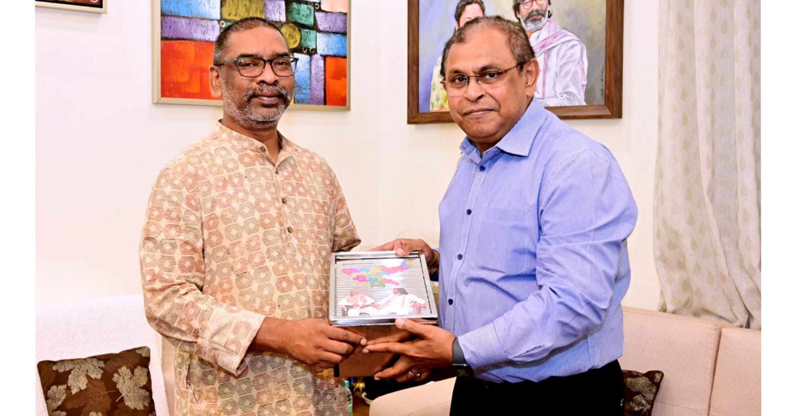 रांची : मुख्यमंत्री Hemant Soren से कांके रोड रांची स्थित मुख्यमंत्री आवासीय कार्यालय में चीफ रेसिडेंट एग्जीक्यूटिव, टाटा स्टील संजय मोहन श्रीवास्तव ने मुलाकात की। मुख्यमंत्री से यह उनकी शिष्टाचार भेंट थी।