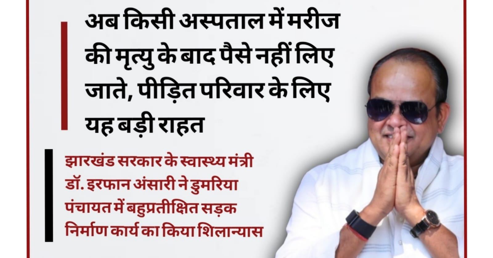 झारखंड सरकार के स्वास्थ्य मंत्री एवं जामताड़ा के लोकप्रिय विधायक डॉ. इरफान अंसारी जी के करकमलों द्वारा कर्माटांड प्रखंड अंतर्गत डुमरिया पंचायत के कबरी बरमुंडी मोड़ से कबरी नीचे टोला तक (3 किमी) सड़क निर्माण कार्य का विधिवत शिलान्यास किया गया।इस बहुप्रतीक्षित सड़क का निर्माण आदिवासी बहुल क्षेत्र के विकास और वहां के निवासियों की वर्षों पुरानी मांग को पूरा करने की दिशा में एक ऐतिहासिक कदम है। इस सड़क के बन जाने से न केवल स्थानीय ग्रामीणों को सुगम आवागमन की सुविधा मिलेगी, बल्कि आसपास के पंचायतों को भी लाभ होगा।इस शुभ अवसर पर मंत्री डॉ. इरफान अंसारी ने जनता को संबोधित करते हुए कहा की ग्रामीणों की यह मांग वर्षों से लंबित थी। मैंने वादा किया था कि यह सड़क जरूर बनेगी, और आज मैं अपना वादा निभा रहा हूँ। यह सड़क न केवल यातायात को सुगम बनाएगी बल्कि क्षेत्र में विकास के नए रास्ते भी खोलेगी।”मंत्री जी ने आगे कहा कि झारखंड की जनता ने हमेशा विकास को प्राथमिकता दी है और जात-पात तथा गलत प्रचार से प्रभावित नहीं हुई। उन्होंने कहा कि जब भाजपा फर्जी मुद्दों, घुसपैठियों और जातीय जहर फैलाने में लगी थी, तब जामताड़ा की जनता ने सही निर्णय लेकर हेमंत सोरेन जी को दोबारा मुख्यमंत्री चुना और मुझे तीसरी बार विधायक बनाया। उन्होंने जनता को धन्यवाद देते हुए कहा कि जामताड़ा की जनता की परंपरा रही है कि लोकसभा में गुरुजी और विधानसभा में फुरकान अंसारी जी को चुनती रही है, और यही परंपरा अब भी कायम है।स्वास्थ्य मंत्री डॉ. इरफान अंसारी ने कहा कि झारखंड के मुख्यमंत्री हेमंत सोरेन जी ने उन्हें राज्य के स्वास्थ्य मंत्री की जिम्मेदारी दी है, और वह झारखंड को बीमारी मुक्त करने के संकल्प के साथ काम कर रहे हैं।मंत्री जी ने कहा की आज झारखंड की स्वास्थ्य सुविधाएं लगातार बेहतर हो रही हैं। सरकारी अस्पतालों में अब मरीजों के साथ सम्मानजनक व्यवहार किया जा रहा है। किसी भी अस्पताल में अब मरीज की मृत्यु के बाद पैसे की मांग नहीं होती, क्योंकि सभी को मालूम है कि अगर स्वास्थ्य मंत्री तक शिकायत पहुंच गई, तो कार्रवाई तय है।”उन्होंने बताया कि आने वाले बजट में जामताड़ा के स्वास्थ्य क्षेत्र में ऐतिहासिक बदलाव देखने को मिलेगा। इसके तहत जामताड़ा में 300 बेड का अत्याधुनिक अस्पताल बनेगा।जामताड़ा के मेंझिया में मेडिकल कॉलेज की स्थापना होगी।हर पंचायत में हाई-टेक लैब बनेगी, जहां ग्रामीणों को जांच की सुविधा मिलेगी।उन्होंने कहा कि झारखंड सरकार की निष्पक्ष, पारदर्शी और विकासोन्मुखी नीति के कारण स्वास्थ्य क्षेत्र में क्रांतिकारी परिवर्तन हो रहा है।मंत्री जी ने कहा कि झारखंड सरकार गरीबों, आदिवासियों, दलितों, पिछड़ों और अल्पसंख्यकों के 