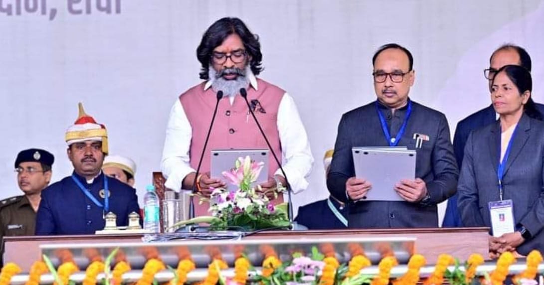 रांची: झामुमो के कार्यकारी अध्यक्ष हेमंत सोरेन ने रांची के मोरहाबादी मैदान में झारखंड के मुख्यमंत्री पद की चौथी बार शपथ ली। राज्यपाल संतोष कुमार गंगवार हेमंत सोरेन को सीएम पद की शपथ दिलायी। AAP के राष्ट्रीय संयोजक अरविंद केजरीवाल और AAP नेता राघव चड्ढा,अखिलेश यादव झारखंड के मुख्यमंत्री हेमंत सोरेन के शपथ ग्रहण समारोह में शामिल हुए।इस दौरान मल्लिकार्जुन खड़गे, राहुल गांधी, ममता बनर्जी सहित कई नेता मौजूद रहे।
