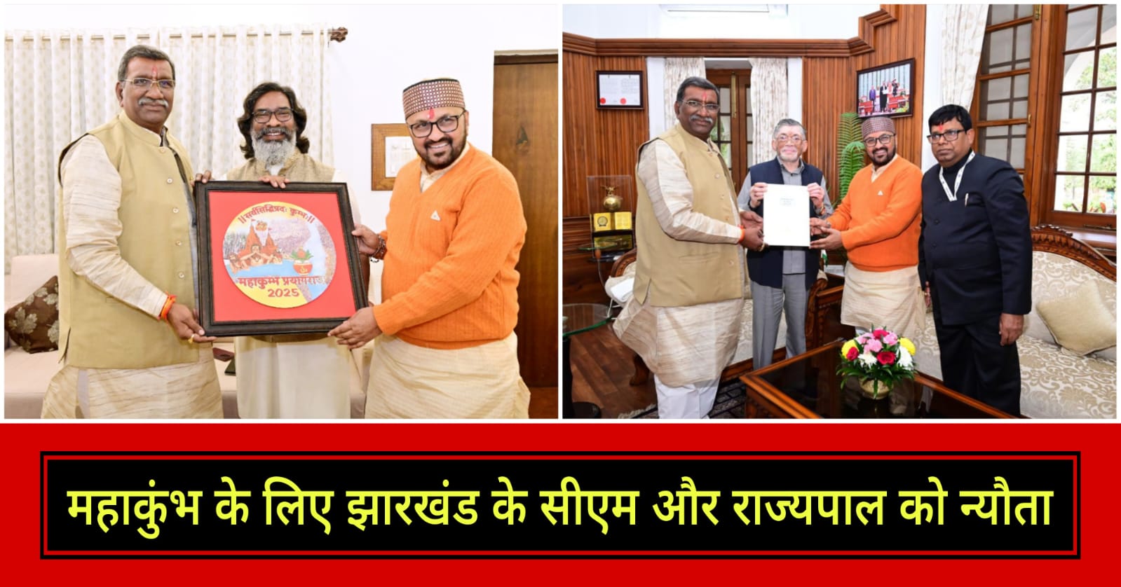 उत्तर प्रदेश के शिक्षा मंत्री योगेंद्र उपाध्याय और कारागार मंत्री सुरेश राही ने मंगलवार को उत्तर प्रदेश के मुख्यमंत्री आदित्यनाथ योगी की ओर से प्रत्येक राज्य को निमंत्रण कार्यक्रम के क्रम में झारखण्ड के सीएम हेमंत सोरेन और राज्यपाल श्री संतोस गंगवार से उनके आवास पर भेंट कर उन्हें 13 जनवरी- 26 फरवरी 2025 तक दिव्य एवं भव्य महाकुम्भ हेतु निमन्त्रित किया ।