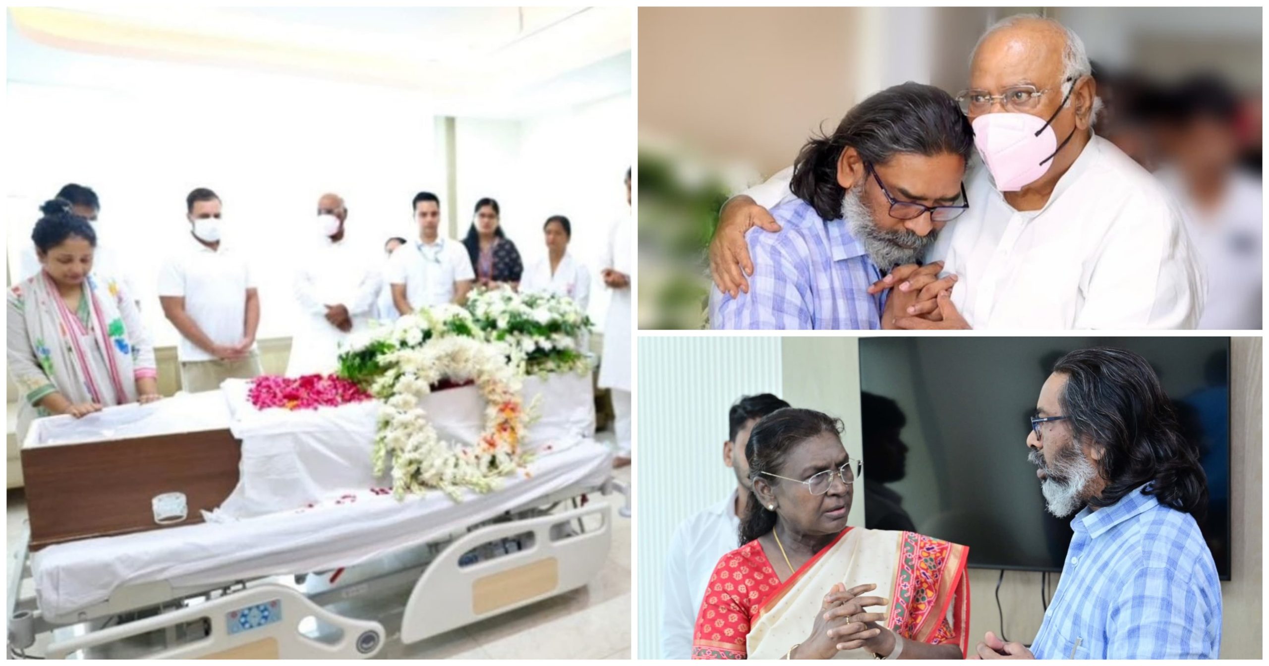 दिल्ली/ रांची : कांग्रेस के राष्ट्रीय अध्यक्ष मल्लिकार्जुन खड़गे एवं लोकसभा में नेता प्रतिपक्ष Rahul Gandhi, राष्ट्रपति द्रौपदी मुर्मू ने गंगाराम अस्पताल में झारखण्ड के पूर्व मुख्यमंत्री एवं राज्यसभा सांसद दिशोम गुरु दिवंगत शिबू सोरेन के पार्थिव शरीर पर माल्यार्पण कर विनम्र श्रद्धांजलि अर्पित की। श्रद्धांजलि अर्पित कर परिवारजनों के प्रति अपनी गहरी संवेदनाएं व्यक्त की।
