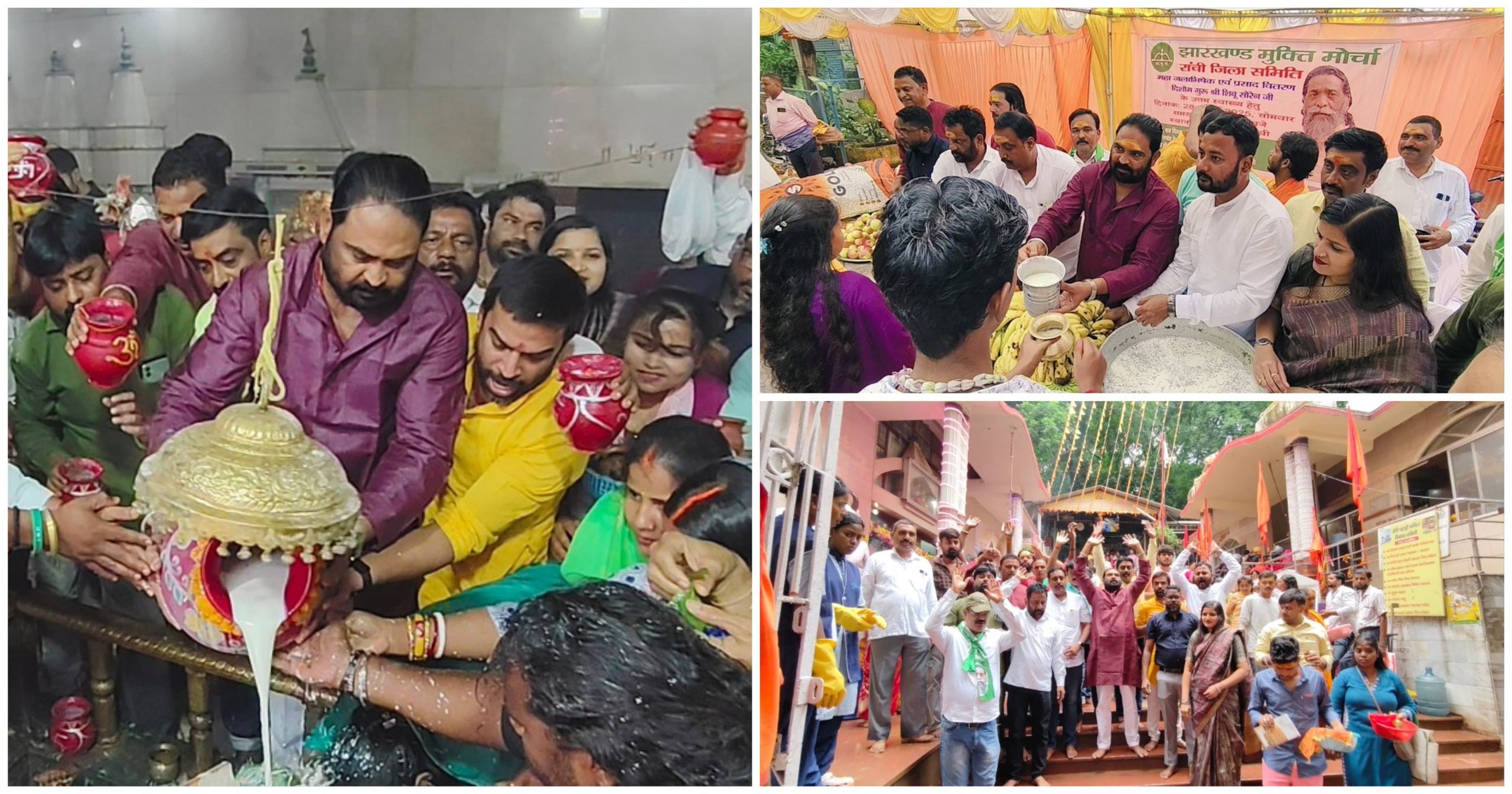 रांची : झामुमो के संस्थापक संरक्षक दिशोम गुरु शिबू सोरेन के स्वास्थ्य लाभ हेतु झामुमो रांची जिला के पार्टी कार्यकर्ताओं के साथ झामुमो के महासचिव और प्रवक्ता विनोद कुमार पांडेय ने रांची के पहाड़ी मंदिर मे भगवान भोलेनाथ का जलाभिषेक कर पूजा अर्चना की। भगवान शिव से शिबू सोरेन के शीघ्र स्वास्थ्य लाभ की कामना की।